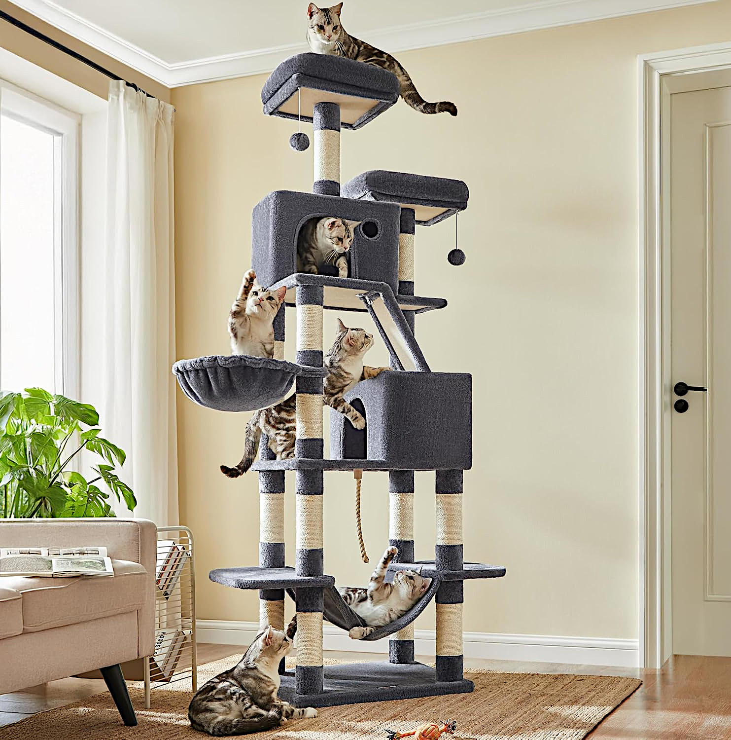 It’s not just a tree—it’s a multi-level cat condo built for households with multiple cats.