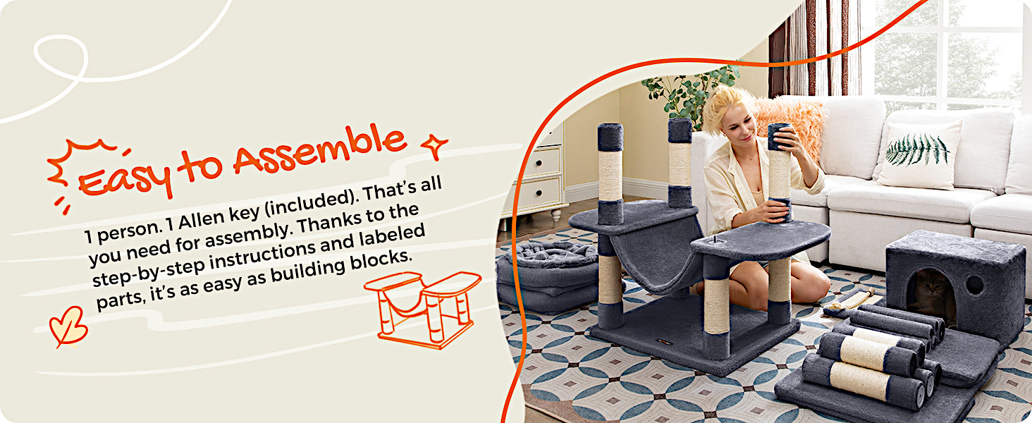 No complicated tools, no frustration. With step-by-step instructions and labeled parts, assembling this cat tree is as straightforward as building blocks. And when it’s time to clean? A quick pass with a lint roller or vacuum keeps it looking fresh and inviting.
