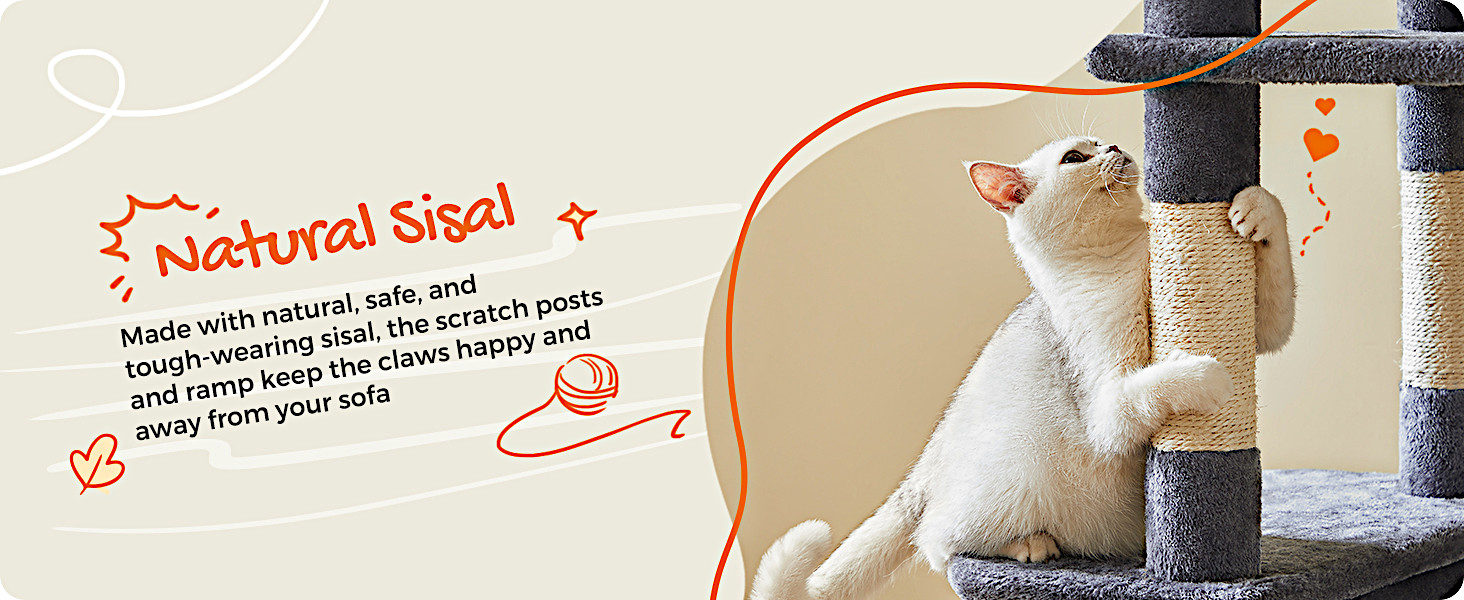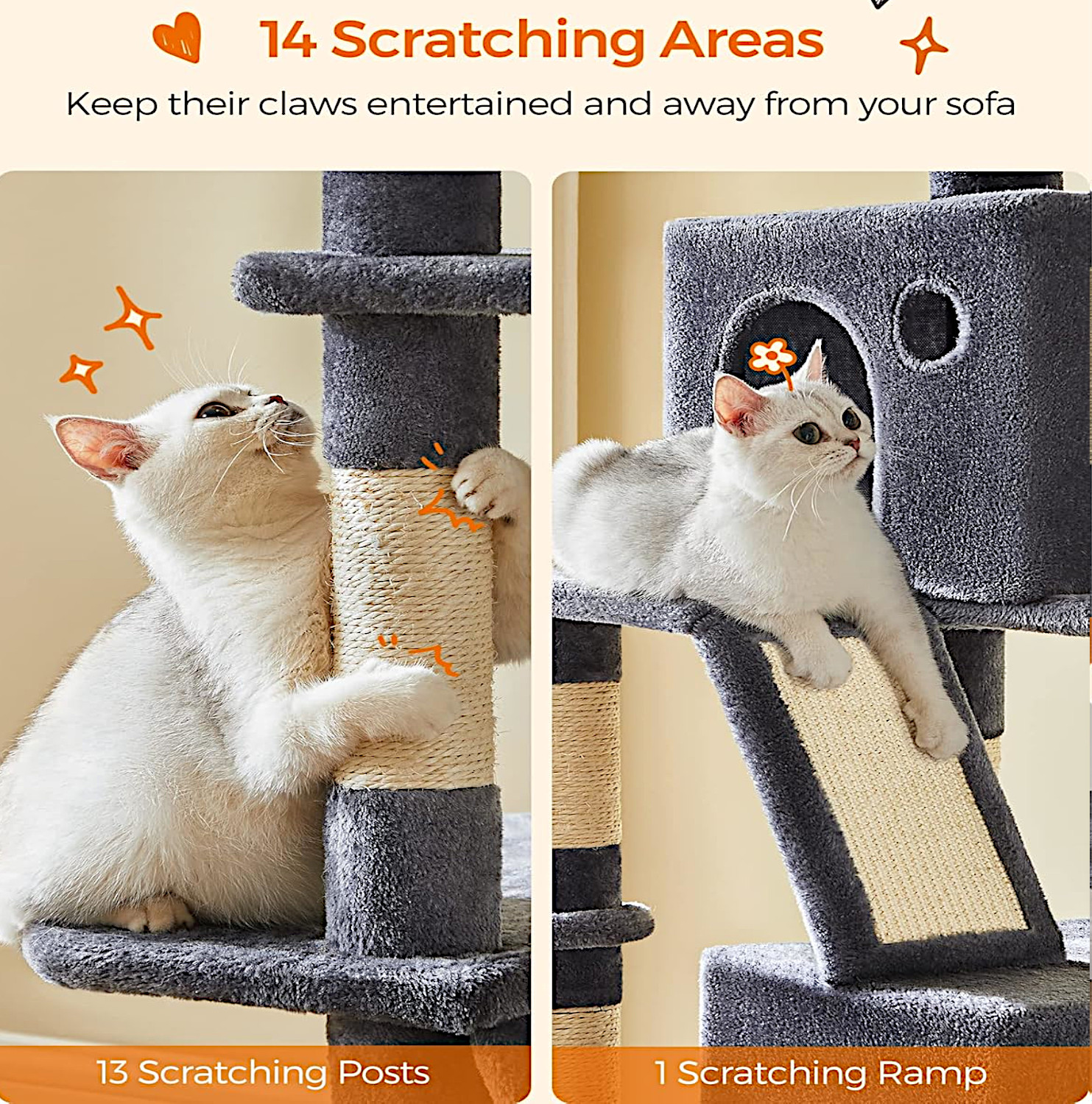 With 13 scratching posts and a scratching ramp, your cats can sharpen their claws to their heart’s content—without targeting your sofa or chairs.