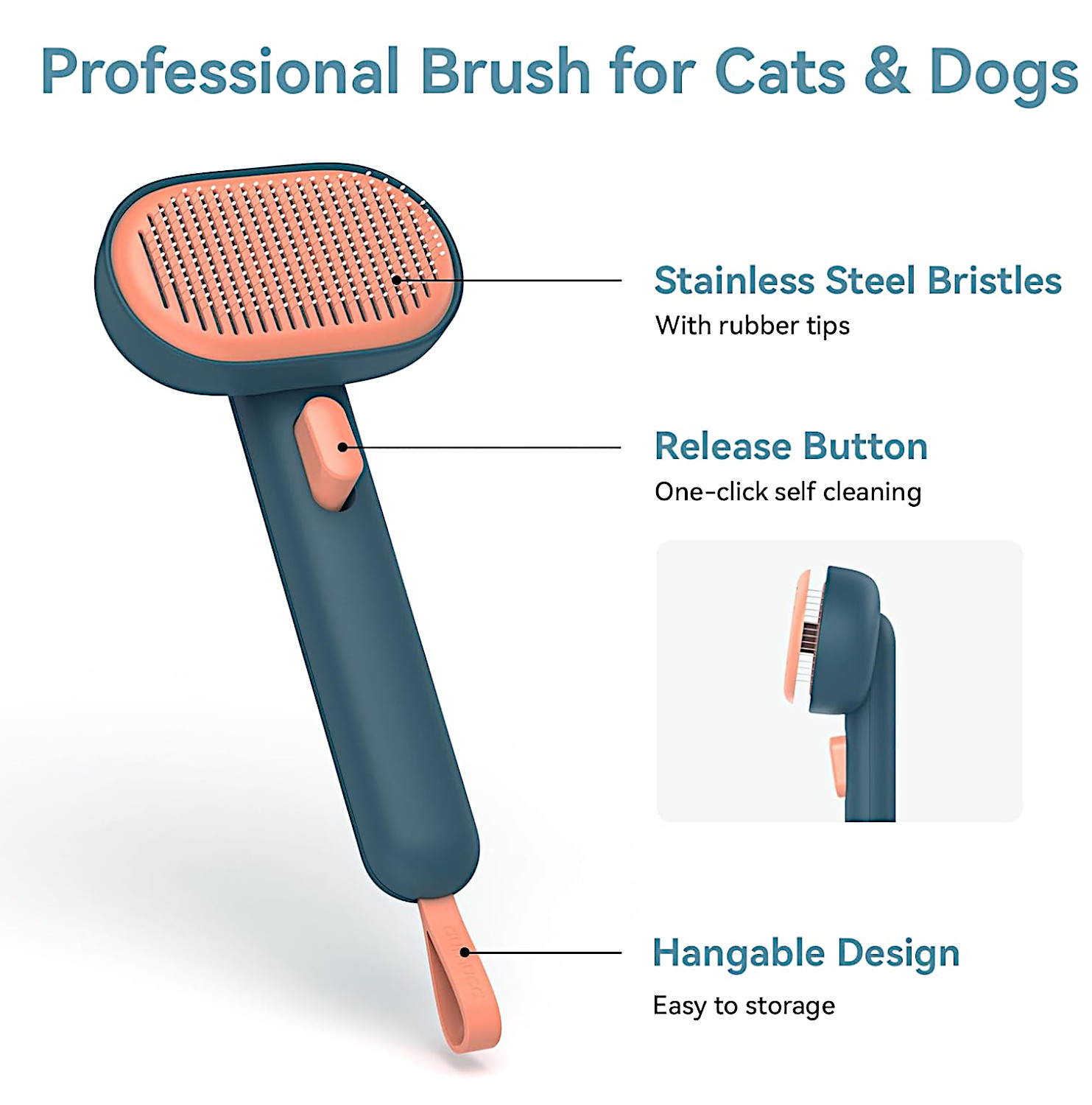 Say goodbye to the hassle of pulling hair out of the brush. With the self-cleaning release button, all it takes is one click to remove fur from the bristles. Fast, hygienic, and mess-free.